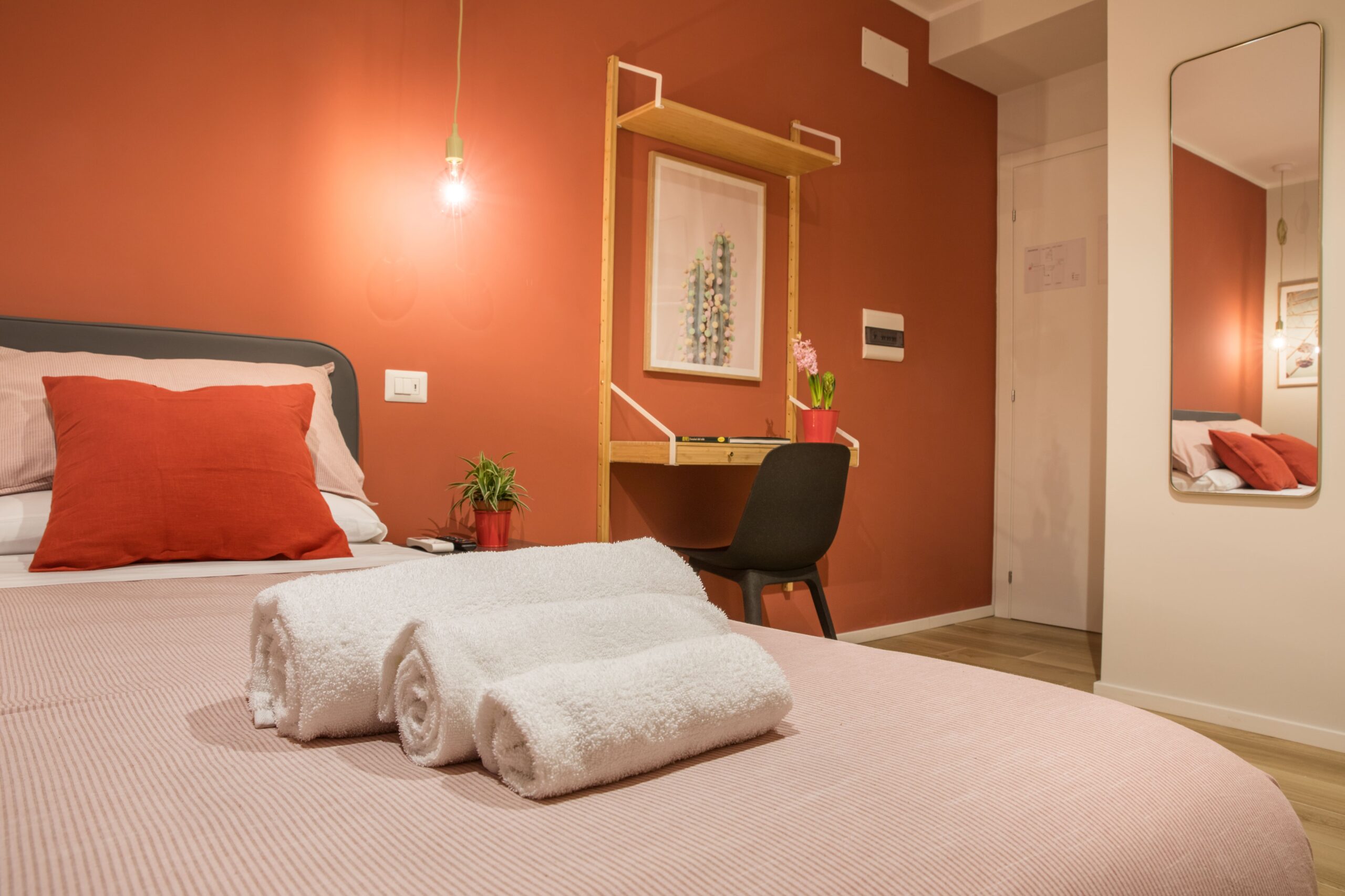 La Habitación Roja es ideal para parejas que buscan un ambiente romántico y moderno a pocos pasos de los Museos Vaticanos.